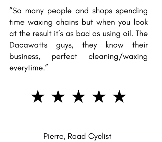 DecaWatts was born out of frustration. We knew chain waxing was the fastest, cleanest, and most efficient way to run a drivetrain, but doing it at home was time-consuming, messy, and inconsistent. Even when everything was done right, results varied from chain to chain, leaving cyclists to figure it out on their own. As competitive cyclists and triathletes, we wanted perfect, repeatable results without having to do the work ourselves. That’s why we built DecaWatts as a subscription service that handles everything for you. You send in your chain, we fully decontaminate and professionally wax it, then return it ready to ride; delivering cleaner, quieter performance, longer drivetrain life, and the fastest chains money can buy, month after month.